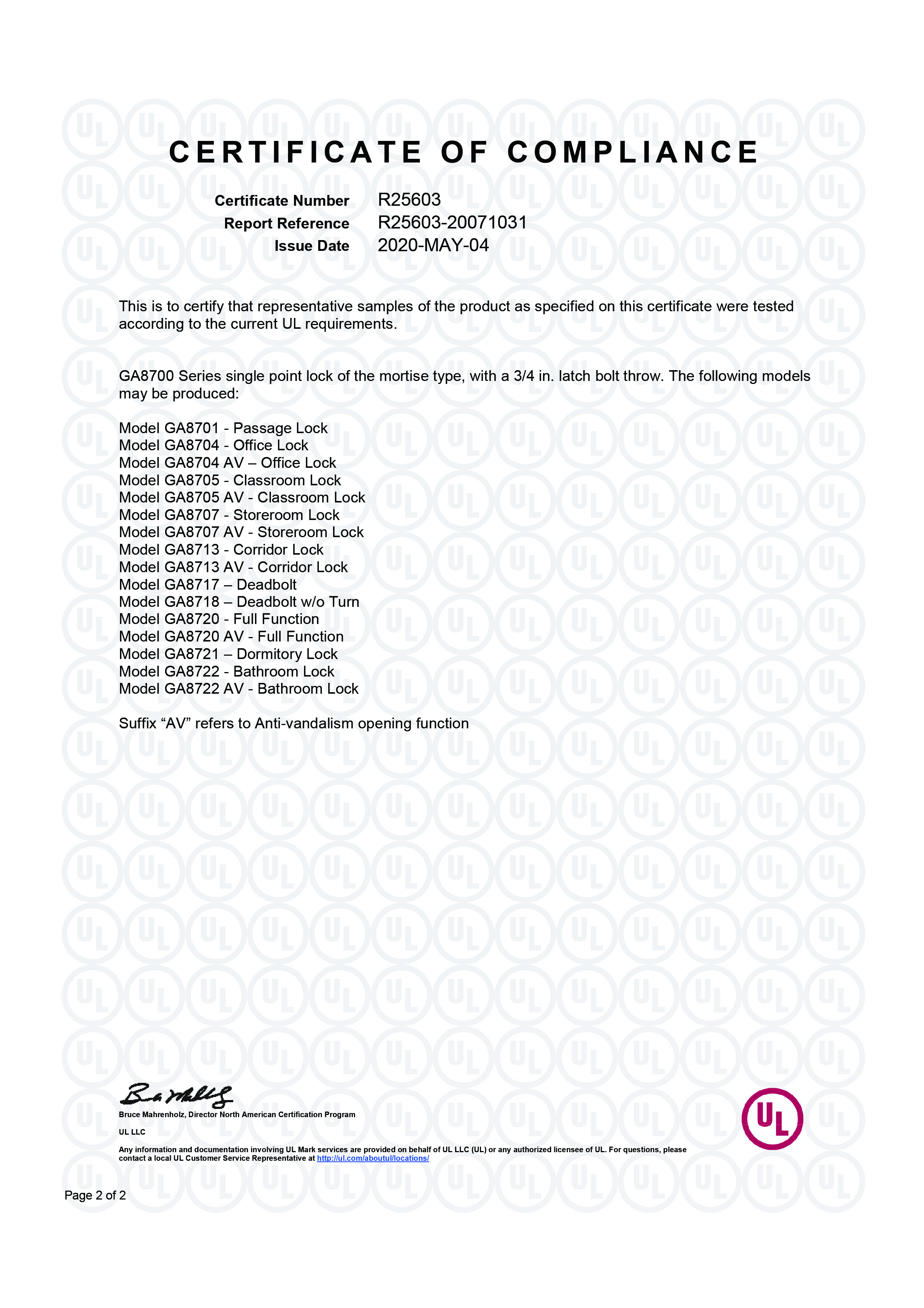 浙江堅(jiān)迪五金制造有限公司始建于 1995 年。自 2003 開(kāi)始,公司致力于高標(biāo)準(zhǔn)商業(yè)鎖的研發(fā)工作,并于 2006 及 2007 年,8700 插芯鎖系列獲得美國(guó)國(guó)家標(biāo)準(zhǔn) ANSI A 156.13-2005 一級(jí)、ANSI A 156.2-2003 二級(jí)和美國(guó) UL 10C3 小時(shí)防火測(cè)試認(rèn)證。自 1998 年以來(lái),公司不斷提升產(chǎn)品和客戶服務(wù)品質(zhì),并獲得了 ISO 9001 的認(rèn)證。